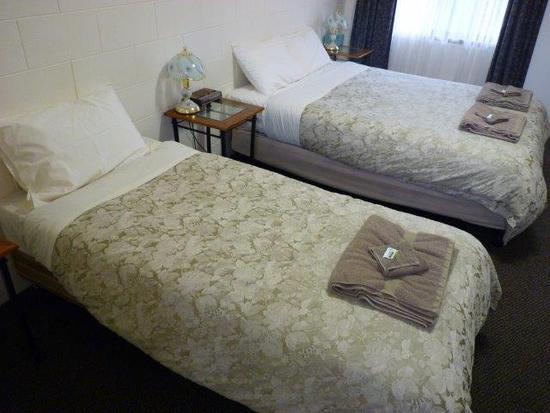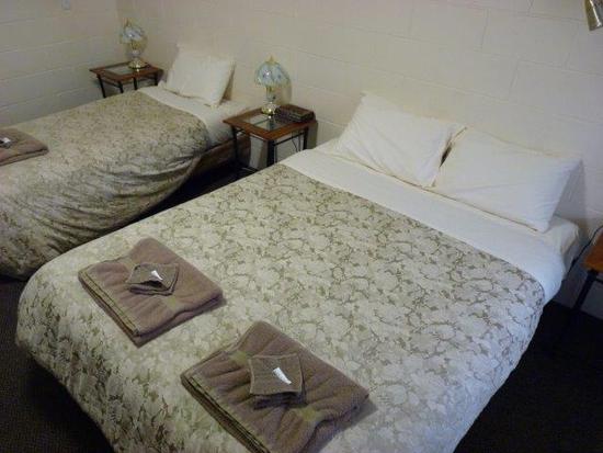 Motel room that sleeps 1 -3 with a Qs & a single bed. 4th person by request on fold-away bed. Ensuite, fridge, kettle, tea & coffee, toaster, microwave, iron, hairdryer, electric blanket, HD LCD TV, reverse cycle air-conditioning. All linen is supplied, beds made,room cleaned upon departure. Off-road & undercover parking available. Suit families or those requiring a QS bed to twin share.