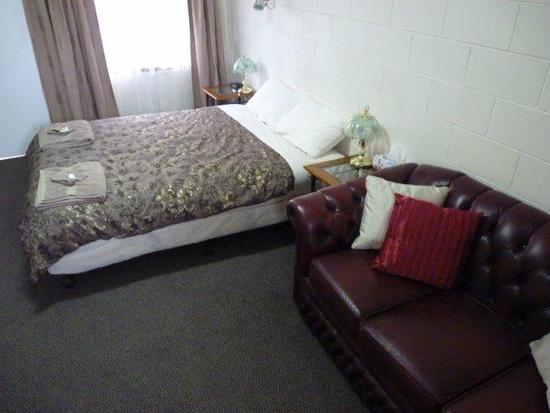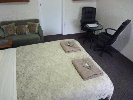 Queen size bed. Rooms offer everything that you would expect in a motel room: ensuite, fridge, kettle, tea & coffee, toaster, microwave, iron, hairdryer, HD LCD TV, reverse cycle air-conditioning, all linen is supplied, bed made, cleaned upon departure. Twin share available. Off-road & undercover parking. Suit some-one who wants value for money.