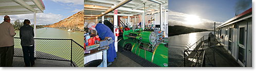 Gain a great perspective of Mannum as you relax and enjoy the passing river scenery and listen to the slap of the paddles. Whether we steam downstream passing spectacular river cliffs and a myriad of bird life or head upstream, this unique journey aboard the grand old lady of the river will appeal to all.