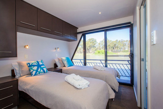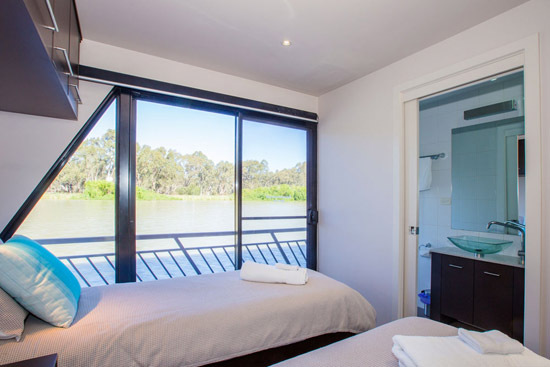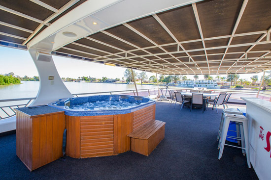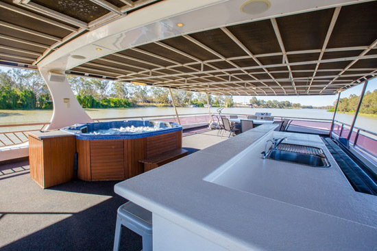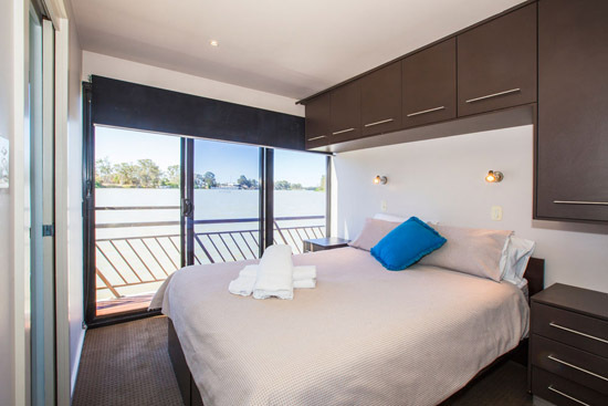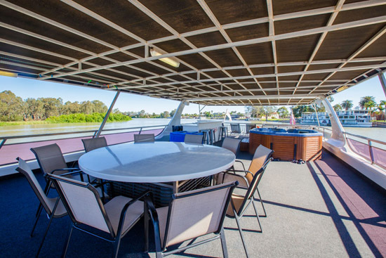 Unwinding from everyday stress will be easy once your are aboard. You can enjoy the panoramic views from the top-deck while relaxing in the spa or from the cocktail bar, curl up in comfort and watch a movie on the wall mounted 42? plasma TV and from the back deck enjoy a spot of fishing or have a ski on the Might Murray River.