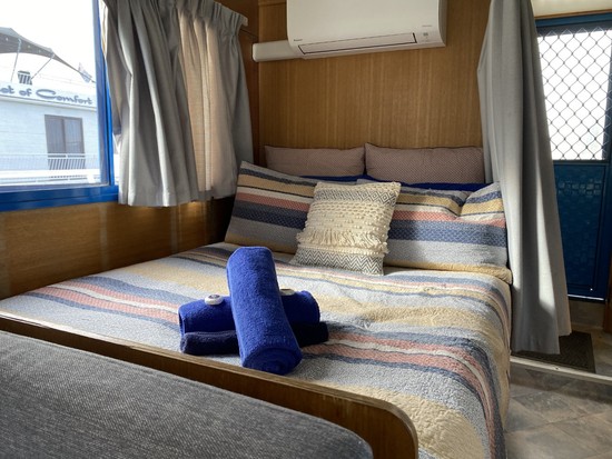 This way you can enjoy a houseboat holiday without having to ‘learn the ropes’. These boats cannot be driven or moved during hire, so there is no need to negotiate who will be doing the driving. You can just sit back, relax, and enjoy your floating accommodation in the peaceful atmosphere of Riverglen Marina, on the Murray River.