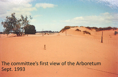 The Arboretum concept was initiated by a group of local residents seeking to beautify the district. The site, now managed by the Coorong District Council is approximately 30 hectares of crown land, formerly weed infested, eroded sand drifts with a few remnant patches of native Pines (Callitris gracilis). Pangarinda is the local Ngarrindjeri dialect means Sunset. A committeed of eleven members was elected at a public meeting at Tailem Bend in September 1993.