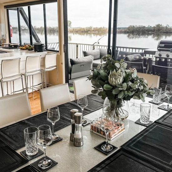 3rd Living Space - Rear Facing Dining0 Bedroom | 0 BathroomsExperience truly unforgettable dining with majestic river views on Wow Factor. Choose between sunrise or sunset depending on where you moor, and enjoy meals at the 10-seat dining table or kitchen bar. ... Enquire Here! |